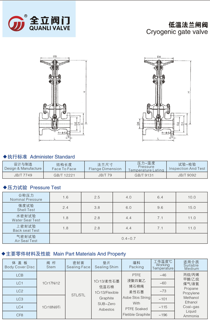 低溫閘閥適用于甲烷、液態天然氣、已烯、二氧化碳、液氨、液氧、液氮、液氫等低溫介質